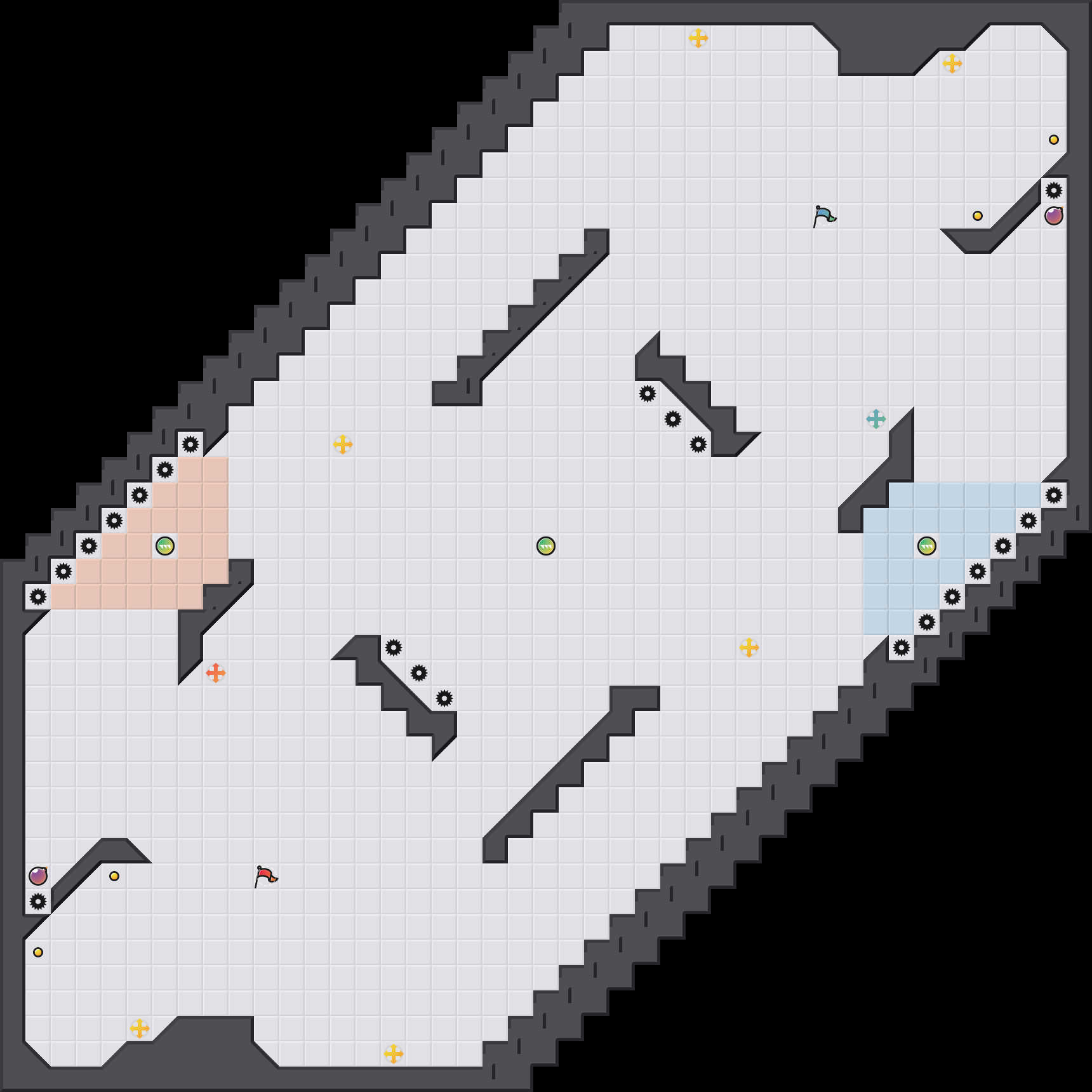 -- Original U-M ID: 42677 -- (TY to bicycle for testing w/ me and being quite literally da bomb. If you're reading this, you should know what I mean. Since, I moved one island back a bit and padded the corners b/c it was too easy to almost die there.) So I decided to make a map out of the base idea from Altered Ego (http://unfortunate-maps.jukejuice.com/show/36906), but then the structure got ugly because I didn't remember how to recreate it and was too lazy to check, so I realized a bomb would make sense to make it less ugly. Then I realized that was actually pretty cool, so I slapped a Rush-y pup area and some mid is