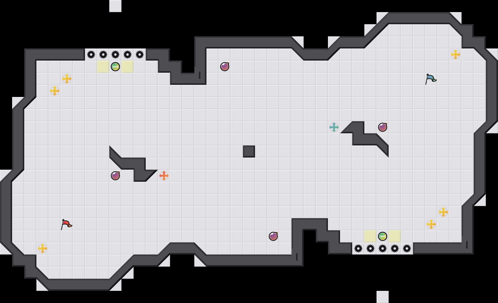 The grav wells influence the first two rows after the spikes. They do not cause you to get stuck anywhere.